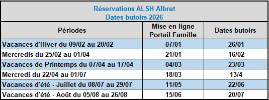 Les réservations effectuées dans les délais par les familles résidant sur le territoire d’Albret Communauté seront traitées prioritairement.